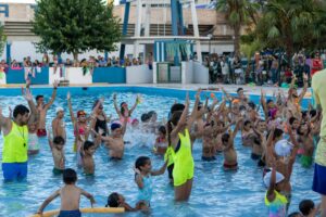 El evento de cierre fue una verdadera fiesta deportiva y de diversión. En primer lugar, los niños participaron en la muestra de pileta, donde pudieron mostrar todo lo aprendido en el agua. Con gran destreza, los pequeños nadadores realizaron demostraciones de técnicas acuáticas, dejando claro el nivel de progreso alcanzado gracias al compromiso y la formación impartida por los profesores de natación del club. Este momento de exhibición fue seguido con mucho entusiasmo por padres y familiares que se acercaron para acompañar a los pequeños.