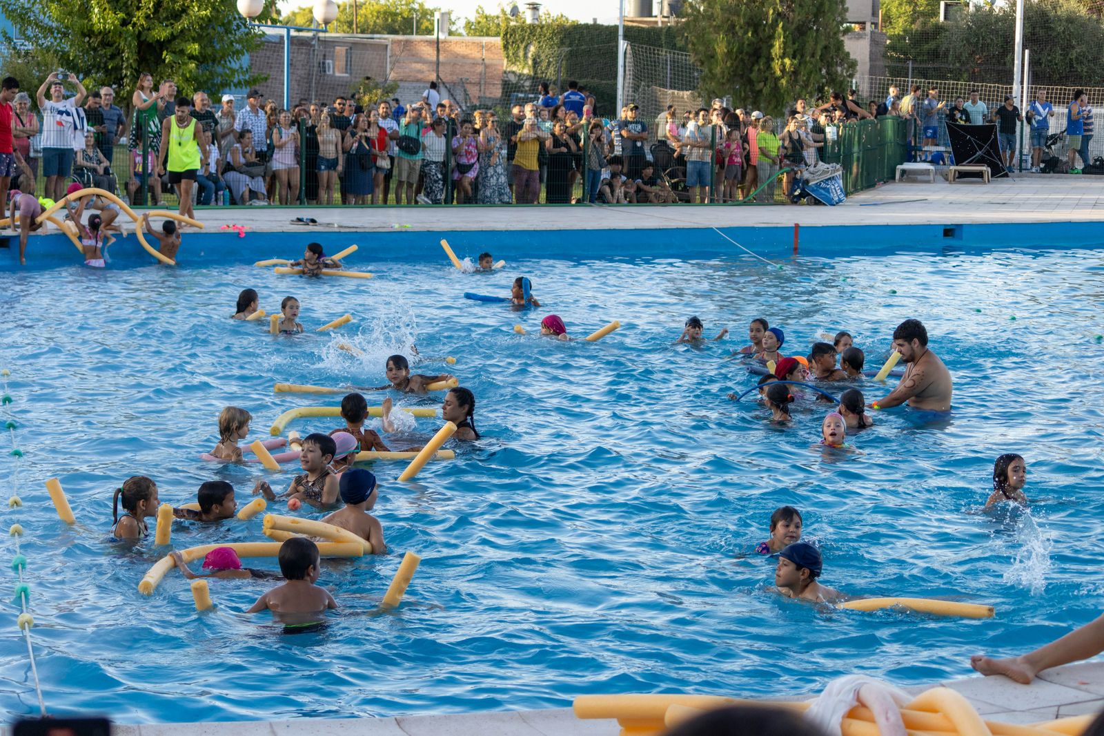El evento de cierre fue una verdadera fiesta deportiva y de diversión. En primer lugar, los niños participaron en la muestra de pileta, donde pudieron mostrar todo lo aprendido en el agua. Con gran destreza, los pequeños nadadores realizaron demostraciones de técnicas acuáticas, dejando claro el nivel de progreso alcanzado gracias al compromiso y la formación impartida por los profesores de natación del club. Este momento de exhibición fue seguido con mucho entusiasmo por padres y familiares que se acercaron para acompañar a los pequeños.